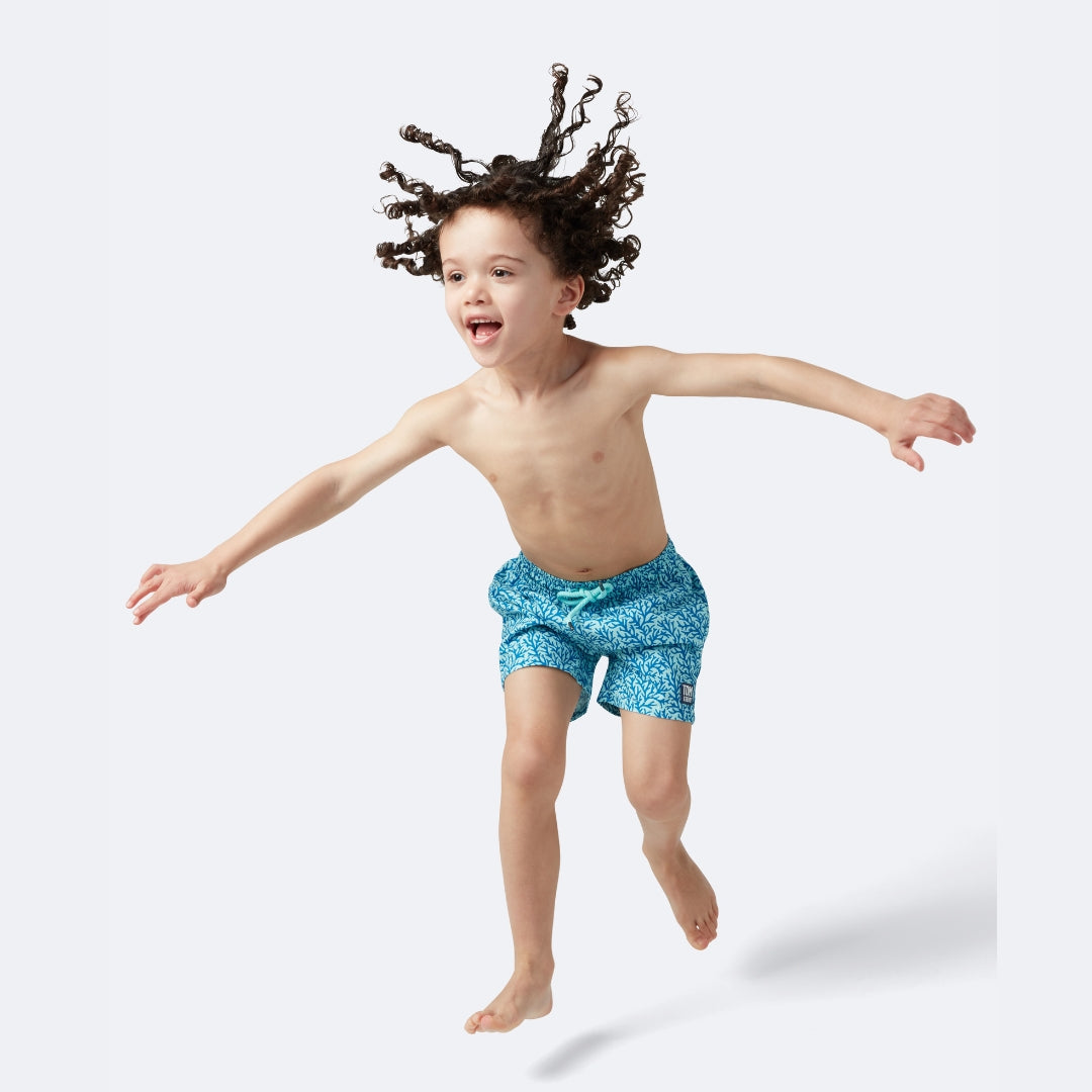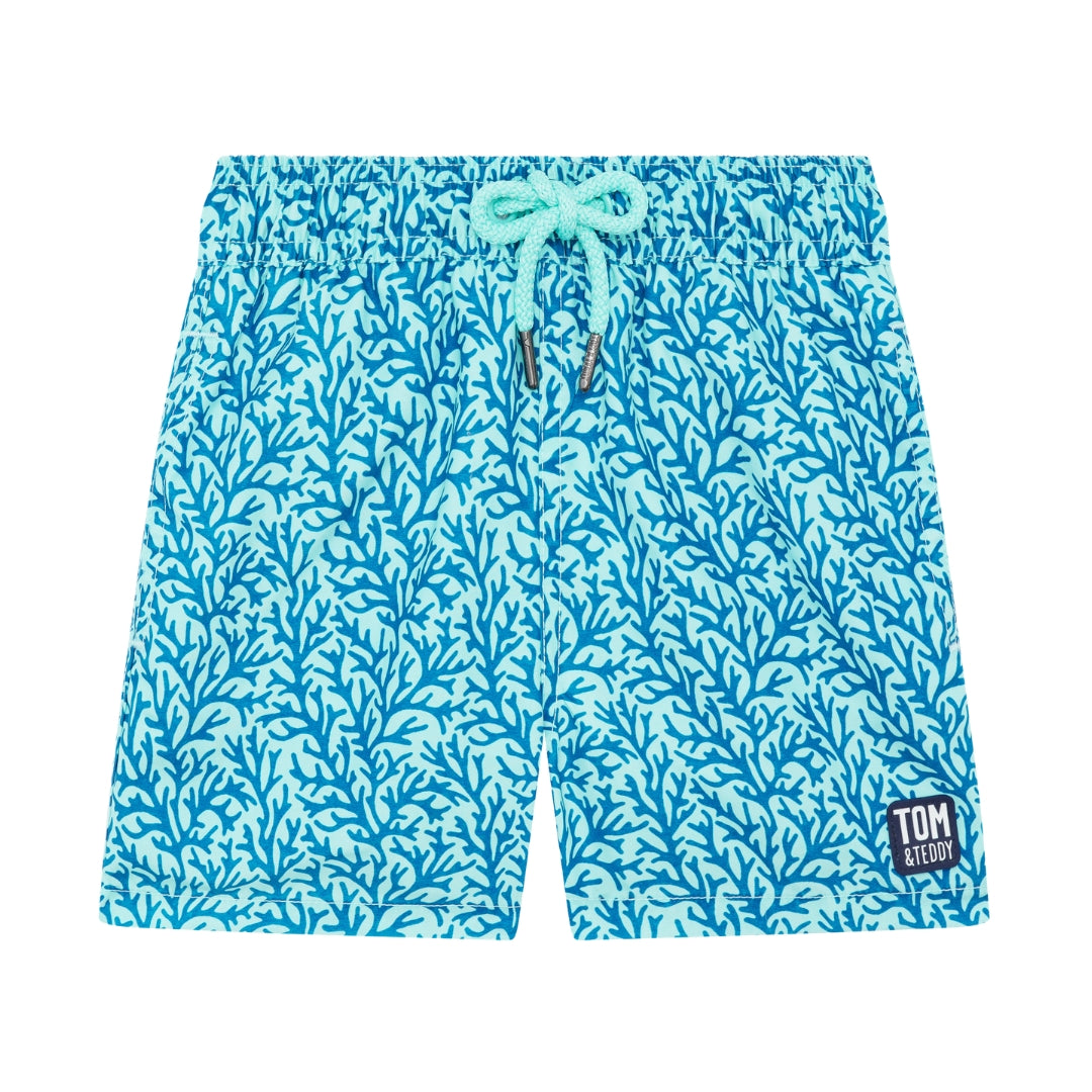 Our Aqua & Blue Coral swim shorts are a new colorway of our popular coral design, featuring a detailed coral motif across calming aqua and ocean-blue tones. Perfect for sun-filled holidays, pool days and coastal adventures.